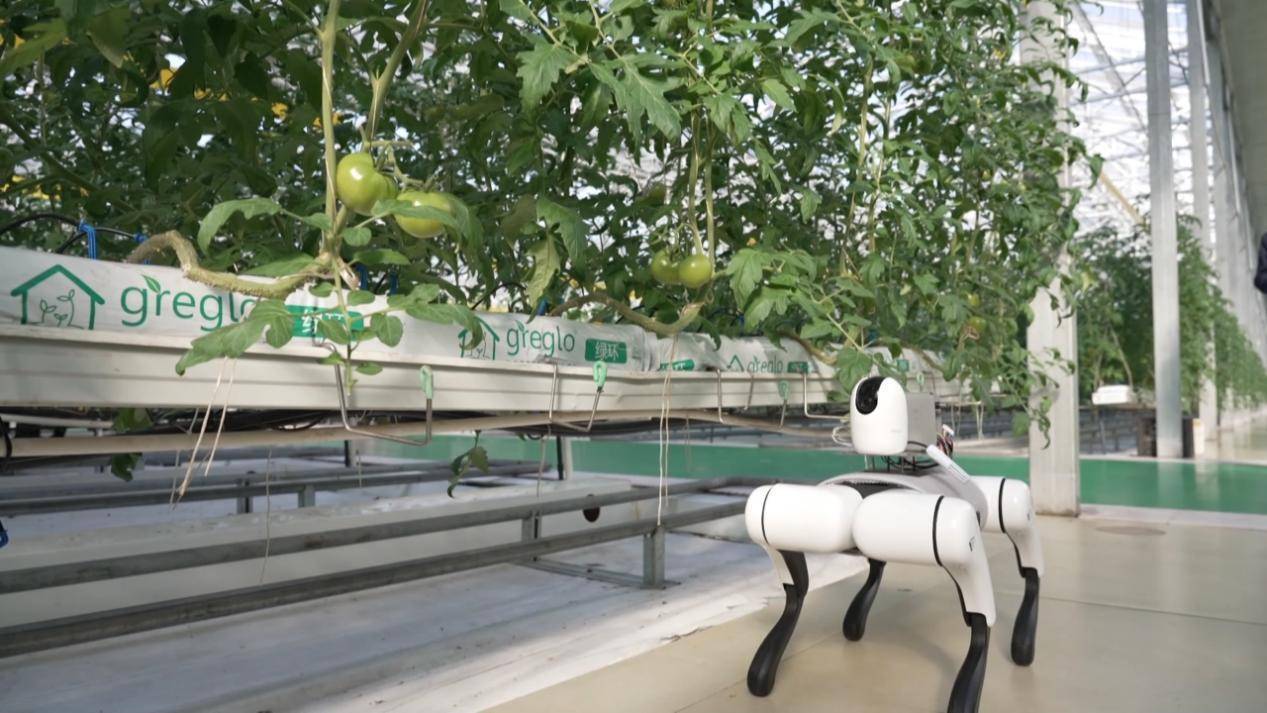 潍坊寿光市洛城街道的一处温室大棚里,一只机器狗沿着田垄缓慢前行,摄像头扫过叶片,自动生成病虫害诊断方案。